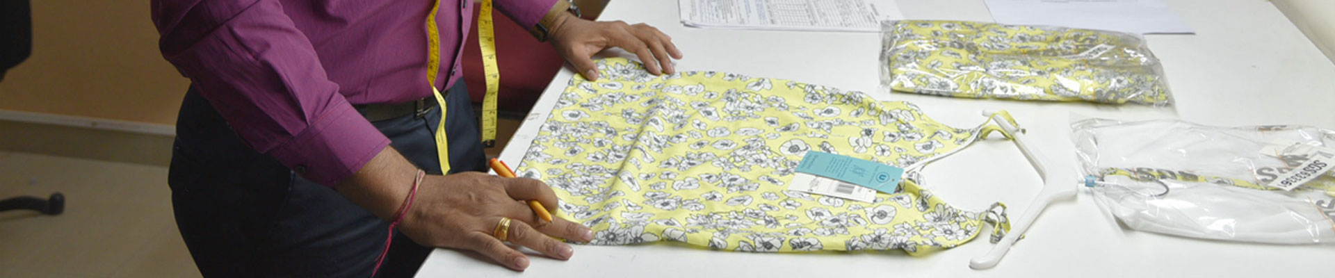 Color matching and fabric check for dyeing defects.
